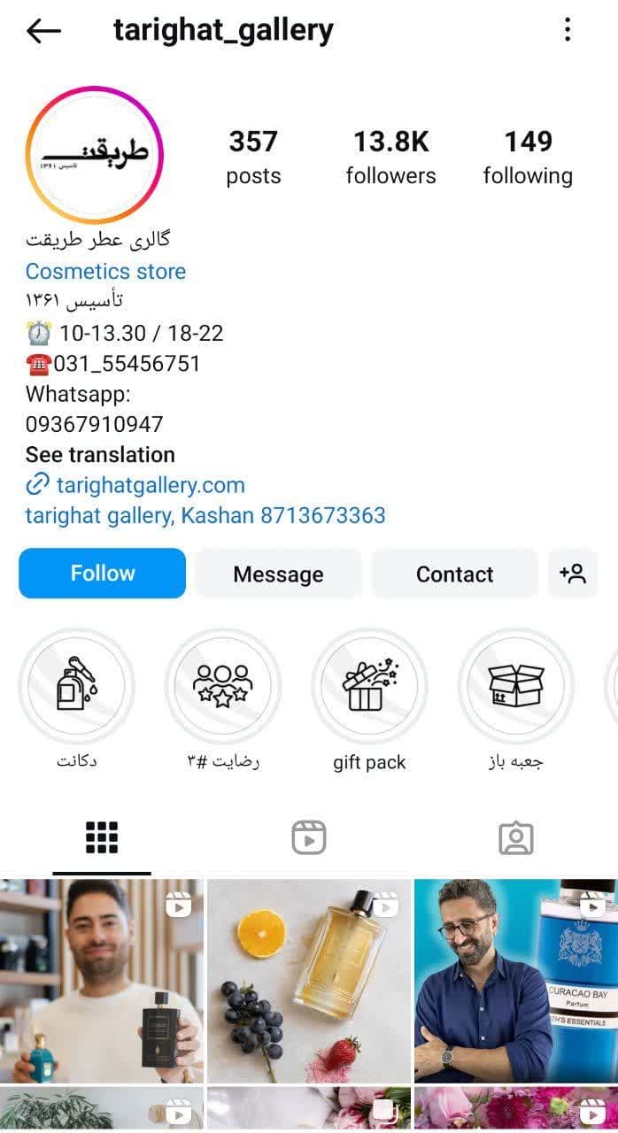 پیج اینستاگرام گالری عطر طریقت